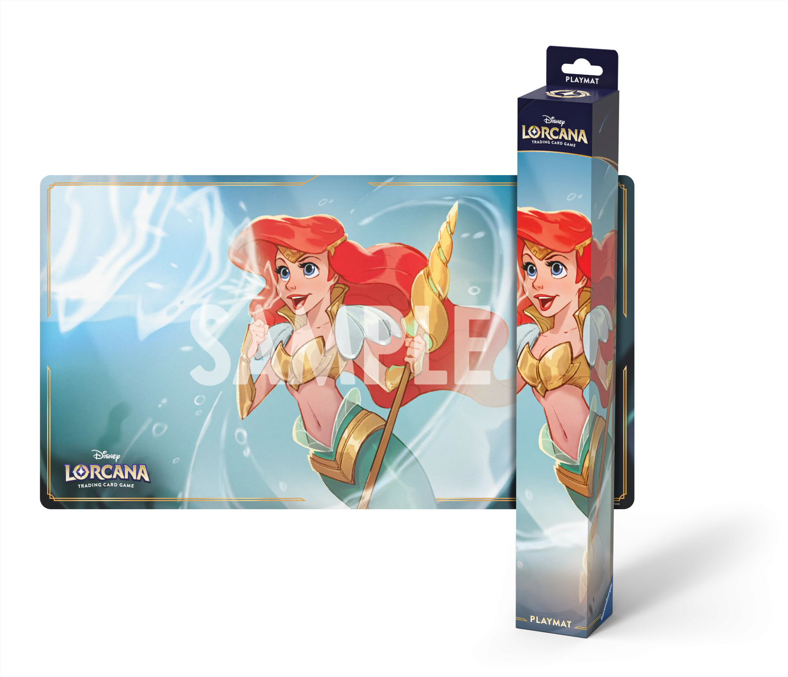 Tapis illustré Disney Lorcana à l’effigie d'Ariel (guerrière sonique). Produit utilisable pour tout type de jeux ! Peut aussi être utilisé comme tapis de bureau ou de souris. La matière du dessus est lisse pour ne pas que les cartes accrochent et s’abîment La matière du dessous est antidérapante afin que le tapis reste stable sur son support Dimensions : 61 x 34.3 cm.