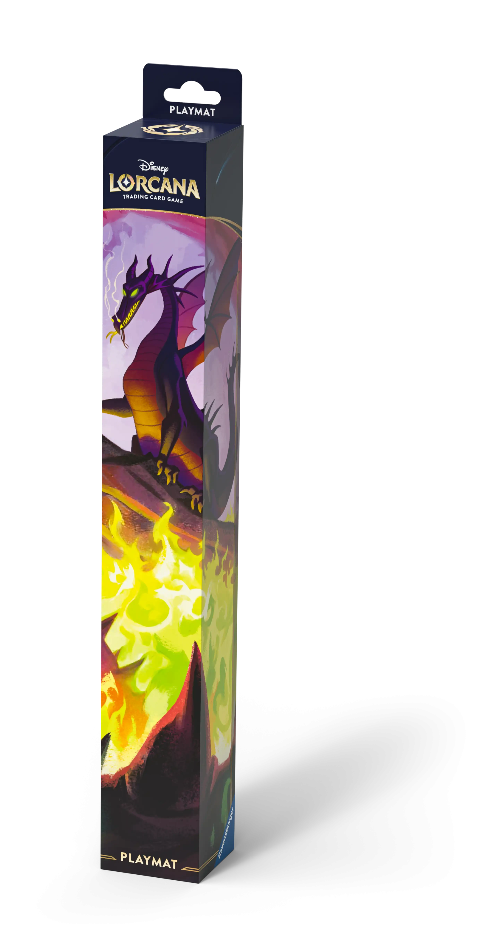 Tapis illustré Disney Lorcana à l’effigie de Maléfique Dragon. Produit utilisable pour tout type de jeux ! Peut aussi être utilisé comme tapis de bureau ou de souris. La matière du dessus est lisse pour ne pas que les cartes accrochent et s’abîment. La matière du dessous est antidérapante afin que le tapis reste stable sur son support. Dimensions : 61 x 34.3 cm.
