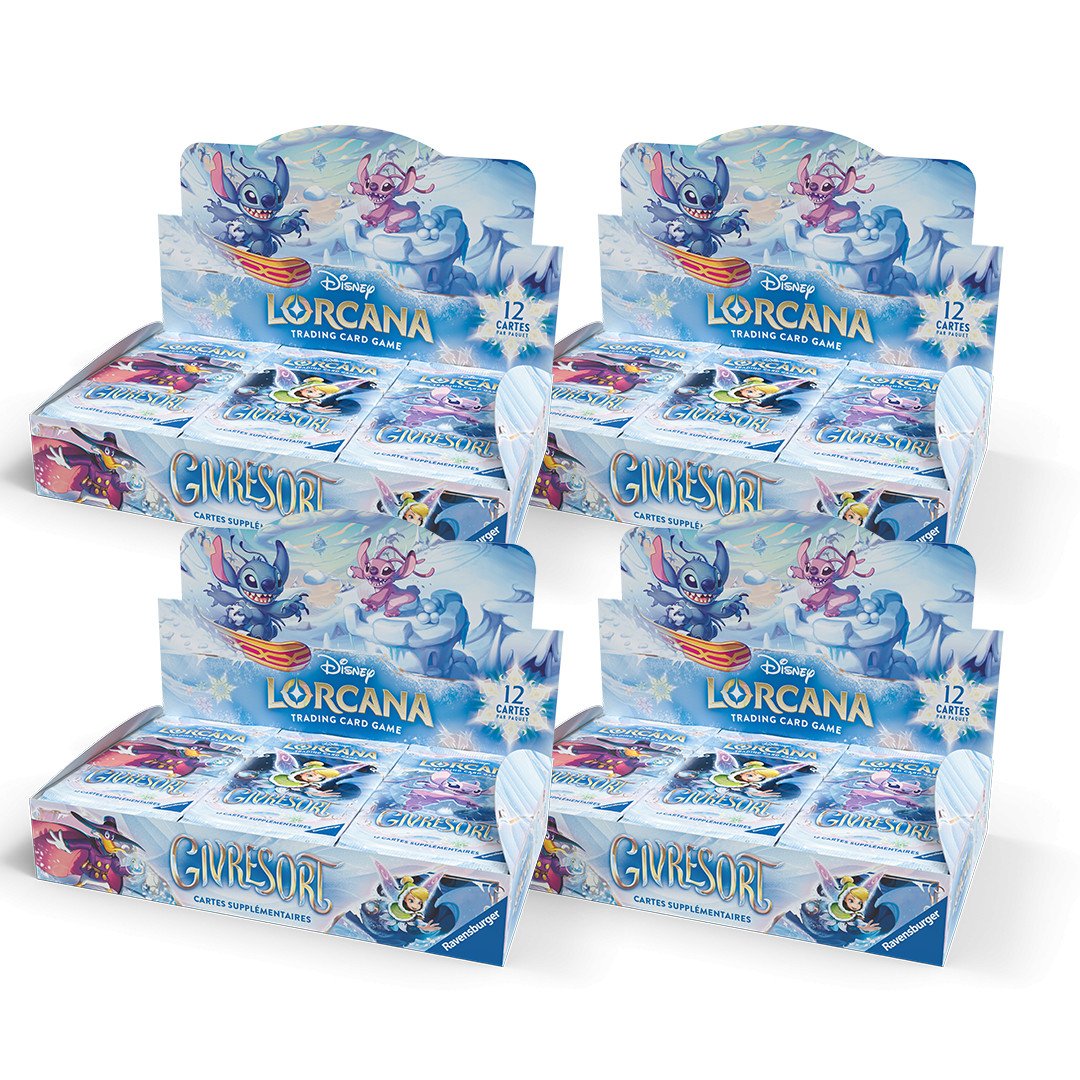 Chaque booster est composé de 6 cartes "communes", 3 cartes "inhabituelles", 2 cartes "rare", "très rare" ou "légendaire", et 1 carte brillante de rareté aléatoire parmi les plus de 200 cartes différentes de Disney Lorcana : Givresort.