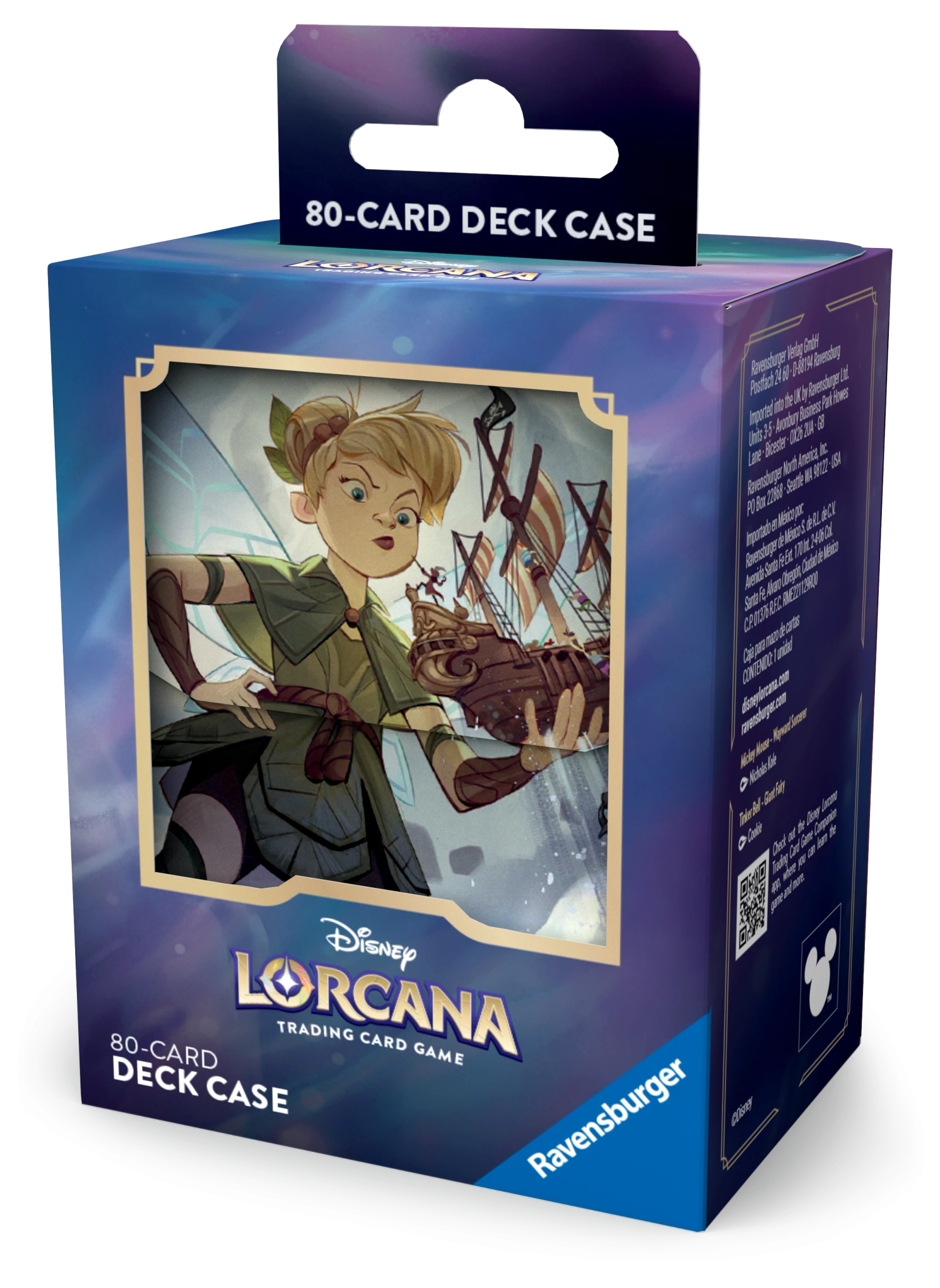 Comme vous ne pouvez pas stocker votre deck dans un bateau pirate, gardez-le protégé entre chaque partie avec cette boite de rangement de deck. Représentant une carte enchantée de la Fée Clochette telle qu'on la voit dans Disney Lorcana : Premier Chapitre, cette boite de rangement peut contenir jusqu'à 80 cartes sous sleeves.